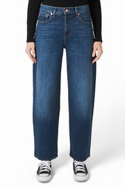 A high-rise barrel jean with a full leg that tapers to a cropped hem. Relaxed through the hip with a soft twist seam—easy, comfortable,