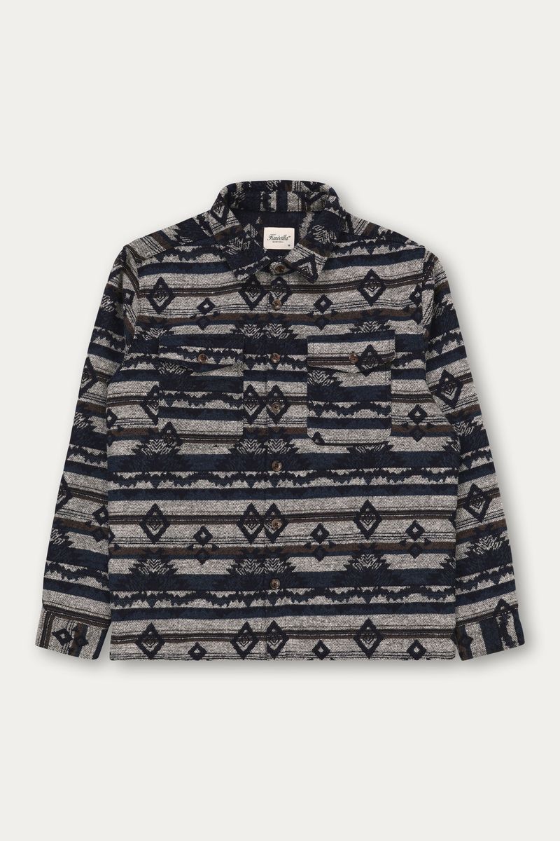 The Navajo Overshirt features a distinctive patterned print on thick woven fabric, offering both durability and style. Perfect as a standalone jacket, it adds a hip, cool vibe to your wardrobe while providing comfortable warmth and texture. Ideal for layering, this piece blends traditional design with contemporary fashion sensibility.